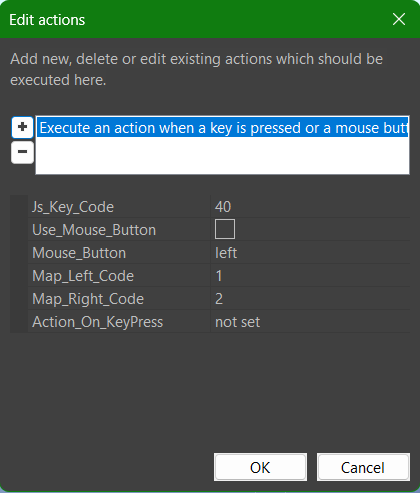 - Action_On_KeyPress (action): The action to perform when the condition is met: either the Js_Key_Code key is pressed, or (if Use_Mouse_Button == true) the mapped mouse click matches.