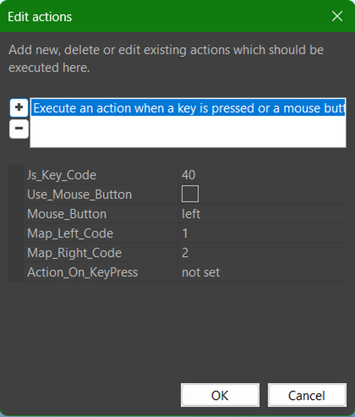 action_On_Keypress now includes both left and right mouse buttons to trigger an action. You can now choose between a keyboard key or the mouse button.