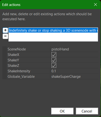 action_SuperCharge_Shake is a custom action for CopperCube that lets you apply a dynamic shake effect to any SceneNode — perfect for simulating energy overloads, weapon charging, or dramatic tension before unleashing a powerful attack.